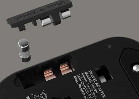 Grazie alla protezione da sovratensione integrata, puoi stare certo che tutti i tuoi dispositivi saranno protetti mentre viaggi. Non dovrai mai preoccuparti di sovraccarichi elettrici, sovracorrenti o cortocircuiti quando utilizzi il nostro adattatore da viaggio. Inoltre, forniamo anche un fusibile di ricambio che puoi portare con te, per ogni evenienza.