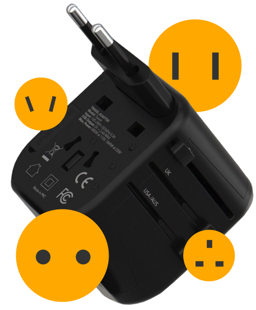 Non importa la meta che scegli, il nostro adattatore universale sarà il tuo miglior compagno di viaggio. Il nostro adattatore funziona in tutta Europa, nel Regno Unito e in Irlanda, negli Stati Uniti e in Nord America, in Australia, in Cina e in altri paesi asiatici. Le nostre quattro diverse spine possono essere utilizzate in oltre 150 paesi diversi in tutto il mondo.